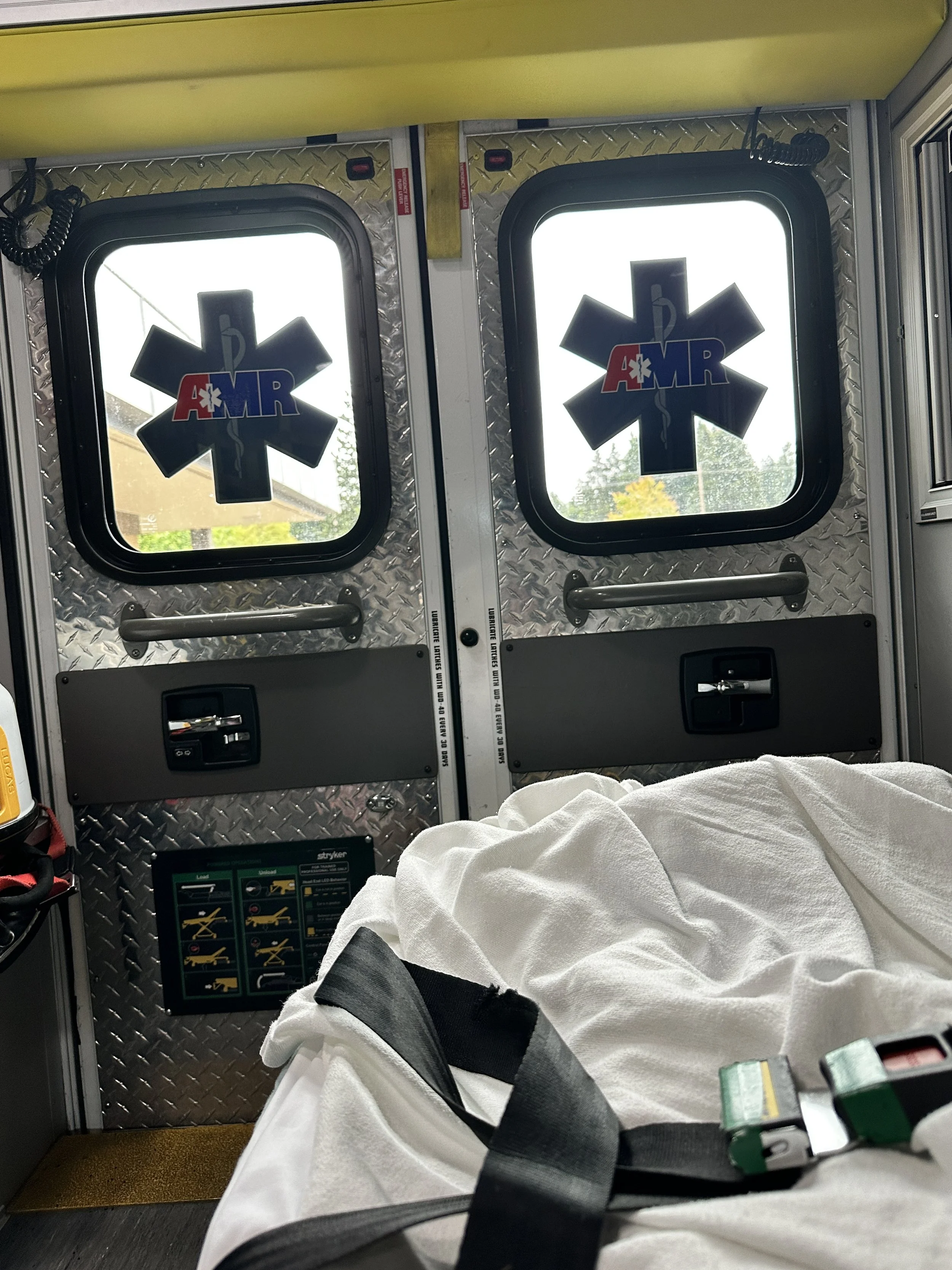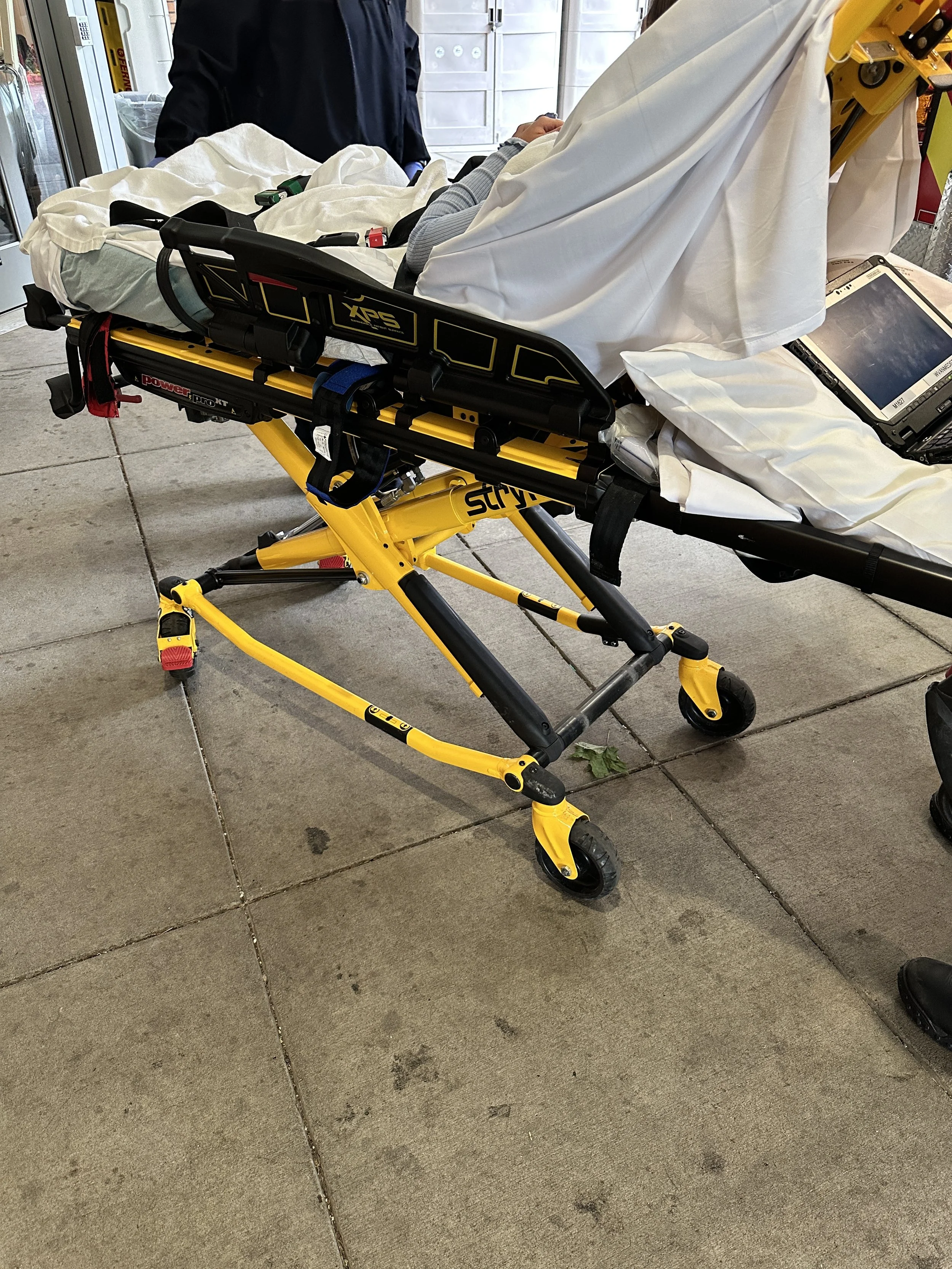 We got Malia onto the stretcher and taken to the hospital, where her breathing and pulse ox were monitored for allergic reaction for some time.
